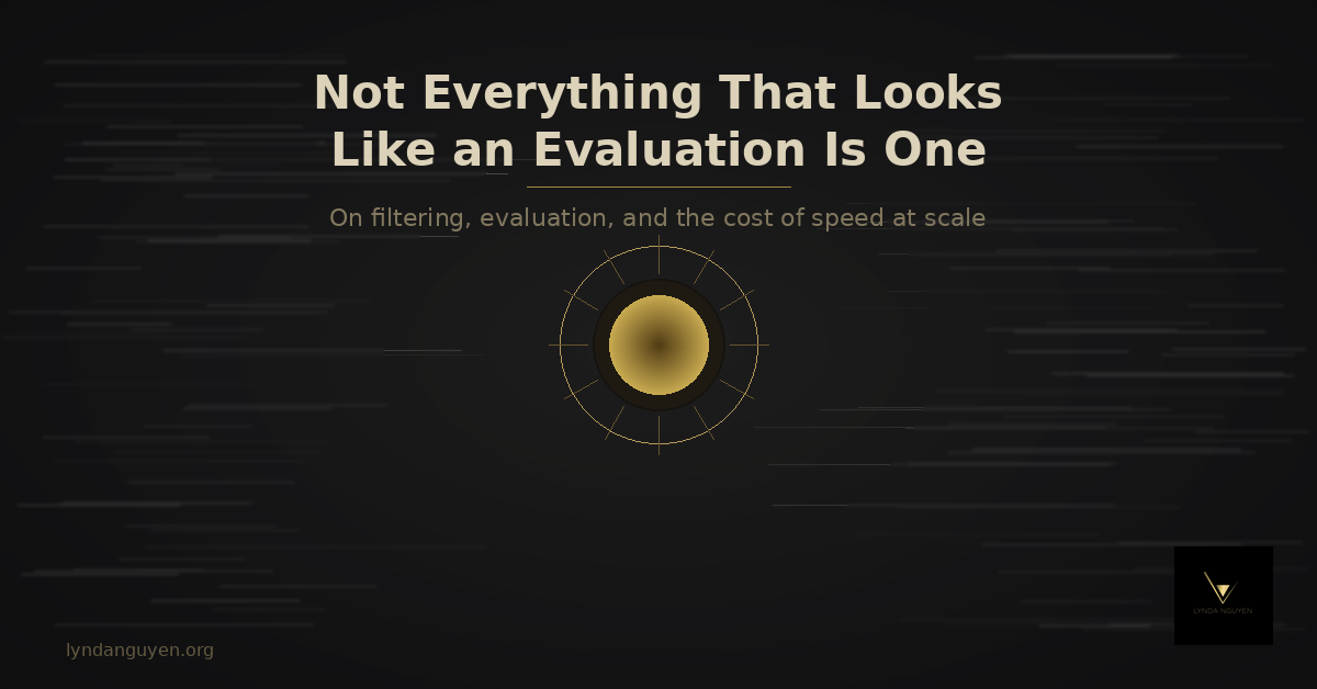 An evaluation is designed to understand. A filter is designed to sort. One creates space for nuance and signal that builds over time. The other answers a simpler question: does this fit what we need right now? Both are legitimate. Both are necessary. The problem is that under pressure, they tend to collapse into each other — and no one announces when it happens.